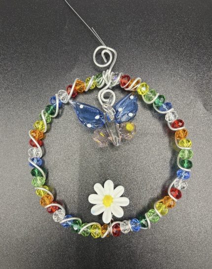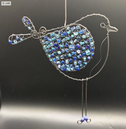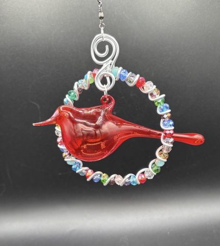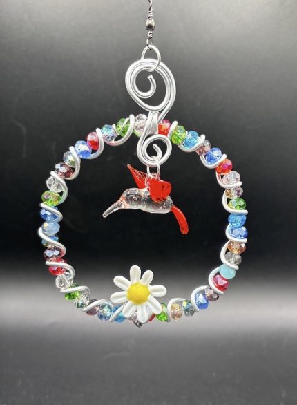 These gorgeously beaded wire birds with dangling legs simply look stunning in a sunny window. We make a variety of colors - red, blue, green, blue-green, multicolor, pink, yellow, orange, fall colors, etc. In the pack of ten, there is an assortment of colors. These come packaged on our WW&G product card stock with a sentiment card, suction cup and in our clear hang-tab sleeve.