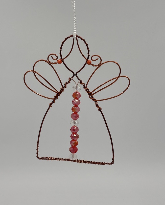 Packaged sun catchers – Copper Archangel, glass beads, sentiment card.