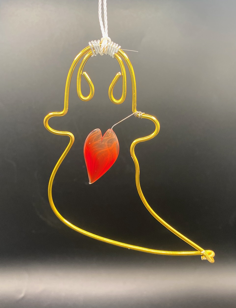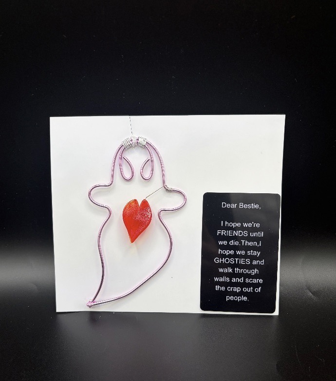 Packaged sun catcher, aluminum ghost, glass heart, sentiment card.