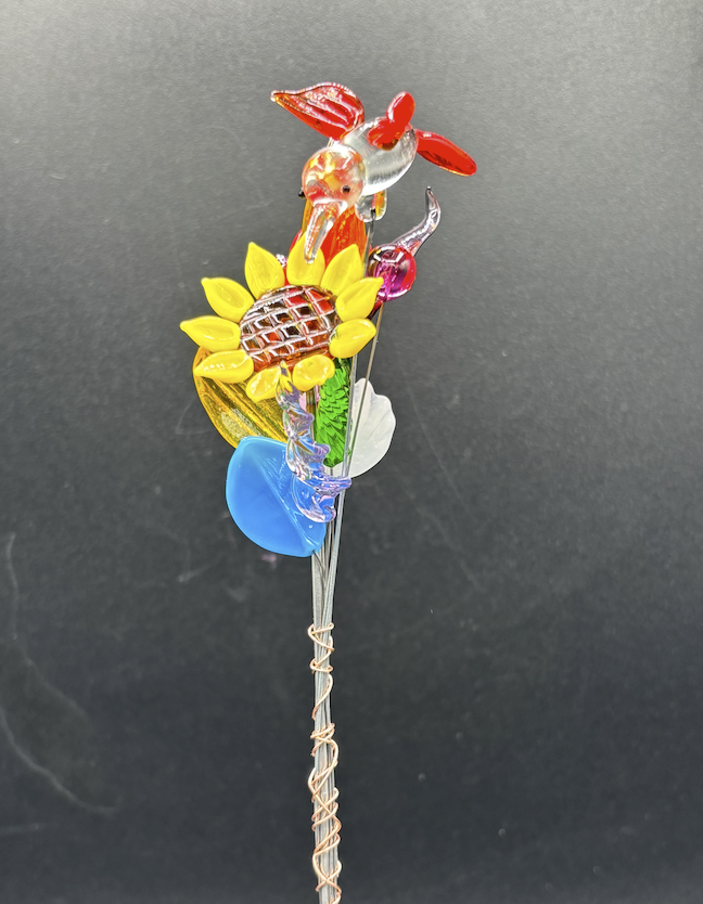 Large Glass Flower Bouquet – Glass flower, nine glass leaves, glass hummingbird.