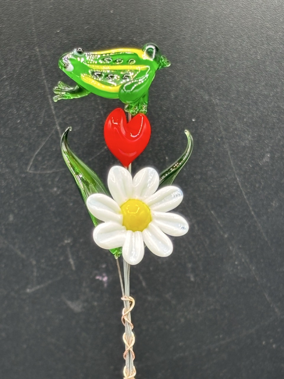 Small glass flower bouquet – Glass flower, two glass leaves, glass heart, glass frog.