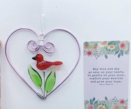 Each of our small glass flower bouquets is lovingly handcrafted and includes a glass flower, two glass leaves and a miniature glass heart. For a touch of whimsy, pick a bouquet with a cute glass creature. These little bouquets are as unique as your customers – and – they won’t wilt or go through abscission! Small glass flower bouquets are approximately 10’’ in length and 2’’ in width. Small glass vase sold separately.
