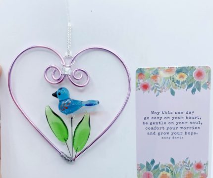 Each of our small glass flower bouquets is lovingly handcrafted and includes a glass flower, two glass leaves and a miniature glass heart. For a touch of whimsy, pick a bouquet with a cute glass creature. These little bouquets are as unique as your customers – and – they won’t wilt or go through abscission! Small glass flower bouquets are approximately 10’’ in length and 2’’ in width. Small glass vase sold separately.
