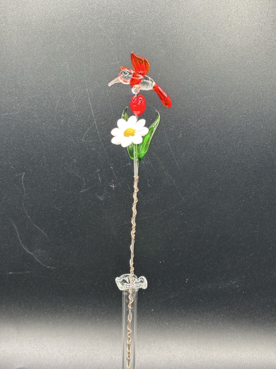 Small glass flower bouquet – Glass flower, two glass leaves, glass heart, glass hummingbird